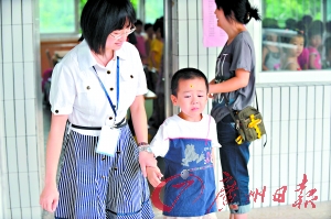 盡管開(kāi)學(xué)前曾在家長(zhǎng)的陪伴下來(lái)過(guò)一次課室,一年級(jí)(1)班的小峰還是走到了一年級(jí)(2)班,前來(lái)“探營(yíng)”的小峰媽媽怎么都找不到小峰,正著急時(shí),才發(fā)現(xiàn)小峰在另外一邊的課室乖乖地排隊(duì),由于表現(xiàn)好額頭上還被老師獎(jiǎng)勵(lì)貼了一朵小花。被老師和媽媽請(qǐng)出課室后,小峰才恍然大悟發(fā)現(xiàn)自己走錯(cuò)了課室,委屈得鼻子一酸,在老師和媽媽的連夸帶哄下才回到了一年級(jí)(1)班坐下。