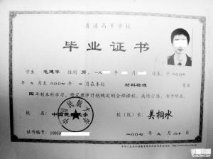 “一般情況下,學(xué)校頒發(fā)畢業(yè)證的時間是7月和9月。根據(jù)我們的了解,毛建平的畢業(yè)證應(yīng)該是在9月補發(fā)的!敝煜驏|說,之前,毛建平也與學(xué)校進(jìn)行過多次接觸,并懷疑自己拿到的這份假學(xué)歷證書出自校方。但是,學(xué)校并沒有理由給一位學(xué)習(xí)四年并順利畢業(yè)取得畢業(yè)證、學(xué)位證的學(xué)生發(fā)一份偽造的證書。按朱向東所說,毛建平是2007年從學(xué)校順利畢業(yè)的,學(xué)校就會按照程序頒發(fā)給他畢業(yè)證書和學(xué)位證書,這是很正常的事。即使學(xué)校學(xué)工部在發(fā)證這一過程中出現(xiàn)丟失或者其他情況,再對他進(jìn)行補辦也是很容易的事,根本沒有理由從學(xué)校發(fā)給他一份假學(xué)歷證書。