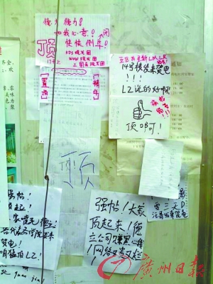 上海第二工業(yè)大學(xué)河?xùn)|校區(qū)的一些學(xué)生,因不滿校園網(wǎng)速極慢,連上QQ都困難,紛紛在寢室門口張貼出一份份類似網(wǎng)上灌水的“跟帖”,集體聲討學(xué)校網(wǎng)絡(luò)公司(如圖)。有同學(xué)把這種頂帖的盛況拍下來放到網(wǎng)上,引來不少網(wǎng)友的關(guān)注,有網(wǎng)友稱平時大家在網(wǎng)上發(fā)牢騷,學(xué)校根本不知道,但通過這種現(xiàn)實跟帖的方式,學(xué)校就不得不關(guān)注。上海第二工業(yè)大學(xué)相關(guān)負責人回應(yīng)稱,目前事情已經(jīng)解決。