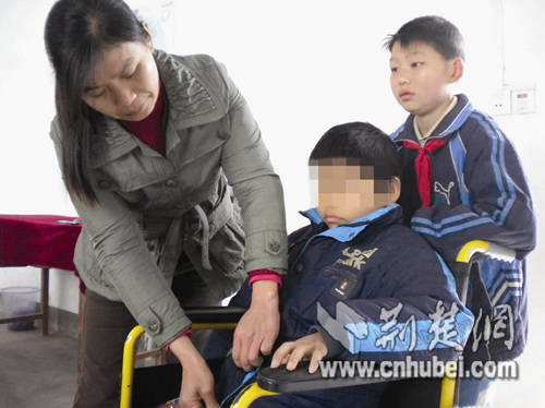 這位母親是該校四年級(jí)學(xué)生陳杰的母親林雙榮。2006年暑假,陳杰跑到公路邊玩耍,不幸遭遇車禍致雙腿殘疾,再也站不起來(lái)。同年秋季開學(xué)后,林雙榮每天背著兒子步行近3公里趕到學(xué)校,然后匆匆趕回家種地,等放學(xué)了再到學(xué)校接兒子。