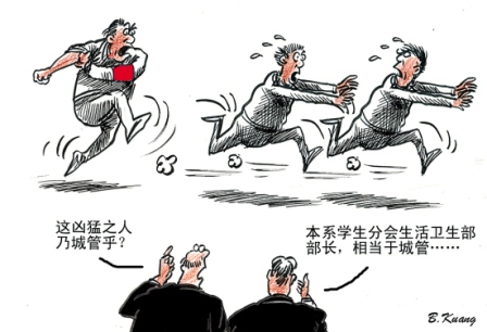 區區一件衛生檢查的小事,何以弄成一樁血案?學生干部及學生之間的溝通對話能力為何如此之弱以至于拔刀相向,值得家長及教育人士思考。而學生會干部的“過度執法”,是否也折射了學生會這個“準官場”的惡習呢? 文/丫丫