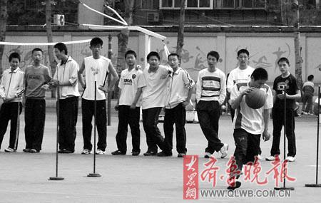 4月16日,濟南市初中畢業生升學考試體育統一測試在濟南市4個考點舉行,大部分學生測試完后興高采烈,很多學生告訴記者:“滿分,沒問題。”