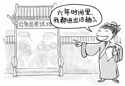 記者:18次公務員考試,你都堅持下來了,如此強的抗挫能力是怎樣培養出來的?