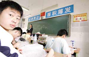 綿陽(yáng)是四川重災(zāi)區(qū)第一個(gè)復(fù)課的地區(qū),昨天上午,離開(kāi)學(xué)校已經(jīng)4天的綿陽(yáng)中學(xué)的高三學(xué)生再次走進(jìn)了課室,熟悉的教室在他們心中變得“搖搖晃晃”,或許高考?jí)毫δ茏屗麄儠簳r(shí)忘記災(zāi)難、傷痛和恐懼。