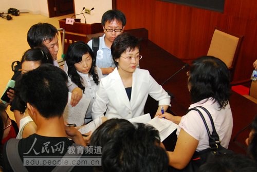 各路記者把新任教育部發(fā)言人團(tuán)團(tuán)圍住