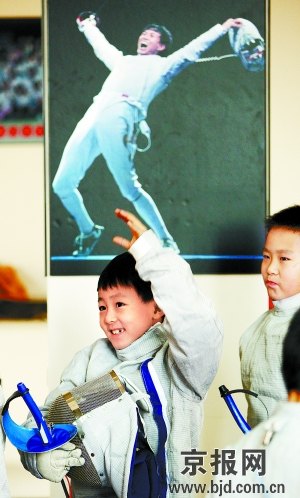 隨著中國運動員仲滿在北京奧運會上成功摘金,服裝帥氣、動作刺激、講究優雅的擊劍運動,讓孩子們看得“心癢癢”。于是,奧運會閉幕沒多久,東城體校便從天津擊劍隊請來專業教練,辦起了北京首個專門面向少年兒童的業余擊劍班。沒有大張旗鼓的宣傳,教練們在區內的多所小學里轉了一圈兒,200多名“小劍客”便主動找上門來。