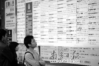 根據現場及網絡招聘數據統計,南方人才網求職本科學歷的占25%,本科以下占74%,碩士及博士為1%。而在企業的招聘當中,對本科生的需求卻只有 10%,本科以下的高達89%,碩博士為1%?梢,本科生明顯供過于求,碩博士相對供求較為平衡,而本科以下的需求則極為旺盛。本科畢業生的就業將更加困難、更加嚴峻。3月23日至4月17日,通過南方人才網發布的招聘應屆生的企業有459家,崗位數3639個,招聘應屆高校畢業生的崗位數與去年同期相比大約持平。應屆高校畢業生求職者有32328人,較去年同期上升約10%。在中國南方人才市場舉辦的日常招聘會中,參會的應屆生約占7%,但日常招聘會提供的應屆畢業生崗位相當少。