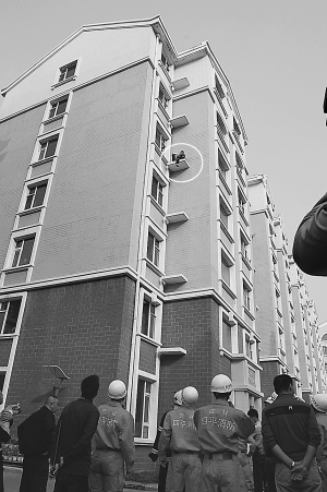 當(dāng)日15時(shí)許,記者接到市民報(bào)料后趕到事發(fā)現(xiàn)場(chǎng)時(shí)看到,一輛消防車停在樓下,數(shù)百市民仰頭向上圍觀,110民警、陽光派出所民警在現(xiàn)場(chǎng)維持秩序,四平市公安局和消防支隊(duì)有關(guān)領(lǐng)導(dǎo)正在研究和布置施救措施,小區(qū)居民從家里拿來棉被,同小區(qū)保安一起自發(fā)地拉撐起來,四平市消防支隊(duì)特勤中隊(duì)指導(dǎo)員王軍勇組織消防人員鋪好安全氣墊,準(zhǔn)備意外發(fā)生后展開救援工作。