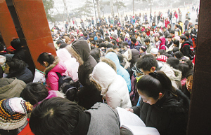 昨天“冷”的不僅僅是北京的天,研究生入學考試也遇到了少有的“降溫”現象。昨天,有120萬人參加了全國碩士研究生入學考試初試,這是自2001年以來,首次出現報名人數呈下降趨勢的一年,相較于去年的128.2萬,降幅達6.39%。共有21萬余人報考了2008年北京碩士研究生,這也比去年減少7127名,降幅為3.2%。雖然報考人數有所下降,但名校的競爭則更加激烈。