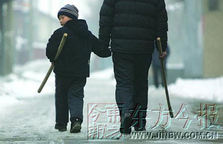24日上午,記者趕到東金店村時,在街上隨處可見手拿棍棒、鐵锨的村民。學校門口,放學時,來接孩子的是清一色手拿棍棒的家長。
