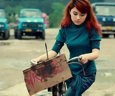 圖片說明:網(wǎng)上流傳的“廢品西施”的照片,女孩還染著一頭金發(fā)