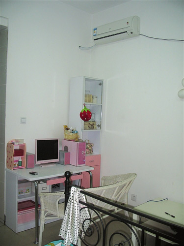 沒有了隔壁寢室的四張上下鋪床、用卡通床單代替了學(xué)校統(tǒng)一發(fā)的單色床單,還安裝上了空調(diào)和小沙發(fā),這間“粉紅小屋”的主人家劉月(化名)很喜歡她親手“裝修”的這間寢室,“很溫馨、很舒適”。