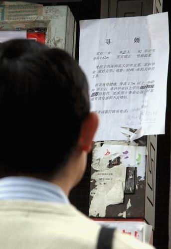 據(jù)父親劉先智(化名)介紹,他和妻子都在成都東郊一家大型國有企業(yè)上班。他們對女兒贊不絕口,從小學(xué)、中學(xué)到大學(xué),女兒一直都沒讓家里操過心,2005年大學(xué)畢業(yè)后通過公招考進(jìn)了成都某機(jī)關(guān)上班。現(xiàn)在女兒已經(jīng)26歲了,還沒有男朋友,看著女兒身邊的同齡同學(xué)和朋友有的結(jié)婚、有的生子,他們一天比一天著急。“女孩子過了28歲找對象就不容易了!現(xiàn)在最不放心的,就是女兒的婚姻大事。”劉先智說,他們都是很傳統(tǒng)的家庭,結(jié)交的圈子都不寬,第一次張貼這種尋婿啟事,也是抱著試一試的態(tài)度。