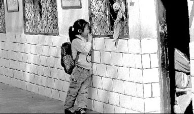 但是不到一個星期,郭曉曉就失去了那張課桌。站在教室外面,她眼睜睜地看著另一個男孩子坐在“自己的課桌”前。她只好跑去問父親:“爸爸,為啥別的小朋友能進(jìn)教室,我卻不能?”