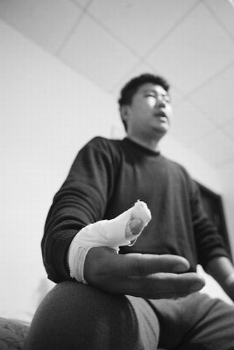 昨日(10月28日),記者在農安縣醫院見到了崔老師,他眼眶青紫,臉腫著,已經骨折的右手拇指纏著繃帶。據崔老師回憶,10月27日17時10分許,他接到班上女同學電話,說有一群20左右歲的男青年來班上找人,這些人酒氣熏天,有的提著棒子,有的還拿著刀,氣勢洶洶地點名要找班上一名姓馬的同學算賬。崔老師接到電話立即跑向教室。此時,距上晚自習還有近20分鐘,教室里有10多名同學,其中有兩名男生。