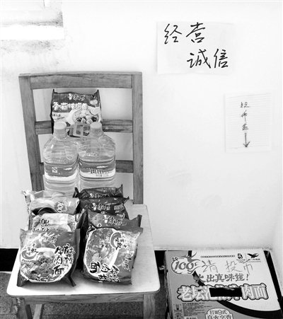 晨報(bào)訊(記者陳志鵬 通訊員曲瀅龍)“由于學(xué)業(yè)為重,本攤無人經(jīng)營,如需要商品,請(qǐng)自覺投幣,以我的誠心換取你的誠信。”本月5日起,華中師范大學(xué)武漢傳媒學(xué)院男生宿舍5樓出現(xiàn)一個(gè)無人經(jīng)營小攤,該校08級(jí)播音主持專業(yè)學(xué)生李立貼出開業(yè)告示,不過,開張3天就遭遇信任危機(jī)。