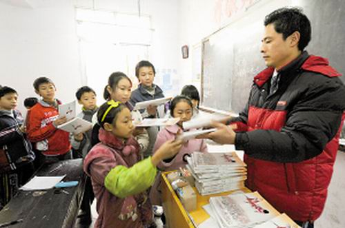 下課后,學(xué)生將教材交給老師保管。記者 史宗偉 葉林 攝