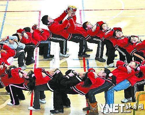 不用任何支撐,20名學(xué)生依次躺在同伴腿上疊成一個(gè)圈,雙手傳遞裝著乒乓球的小桶,6分鐘內(nèi)比賽哪個(gè)隊(duì)傳遞得最快。這是“歡樂(lè)不倒翁”項(xiàng)目比賽時(shí)的場(chǎng)景,不僅比拼個(gè)人的平衡能力,還要求孩子和前后兩個(gè)伙伴都默契配合。