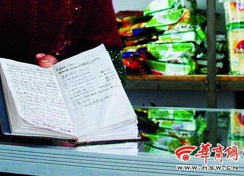 店主仵成翠向記者出示了給學生記賬的小本子,上面密密麻麻記錄了多名小學生賒賬的數額,但沒有具體名目!拔乙矝]有辦法,學生們都認識我,一下課到店里搶著買東西,主要是小吃和學習用品,賬都是他們自己記下的,有的學生還從我這里借現金!
