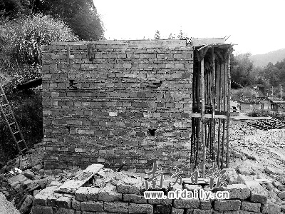 重建第一天,讓他最擔心的事情就出現(xiàn)了,施工方的做法讓廖國軍有些瞠目結舌。建筑商竟然沒有打任何地基就開始在平地上直接砌墻,“這簡直就是豬舍的蓋法”。在廖國軍的堅持下,施工方才勉強同意在墻體的交界處打上了水泥地基。