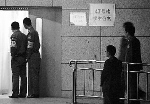 昨日傍晚6時35分,47號學生公寓南側地面上橫躺著墜樓男女的遺體,其中女孩身穿桃紅色睡衣,身下有大片血跡,男孩身穿灰色T恤衫,下穿牛仔褲。