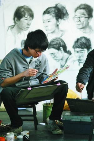 他認(rèn)為這種“升大班”最大的好處在于營(yíng)造了學(xué)習(xí)的氛圍,打破思想僵局,他說(shuō):“在家鄉(xiāng)學(xué)習(xí),始終跟著老師一筆一畫地畫,很容易形成思維定勢(shì)。升大班里有來(lái)自不同地方的考生,能吸取別人的長(zhǎng)處。”