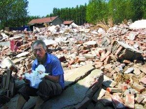 在河北廊坊,2006年被評為河北省生態(tài)文明村的董家務(wù)村,如今已成一片廢墟,大片新修的村居在鏟車下倒塌,剛修好的“村村通”水泥路被鏟平。