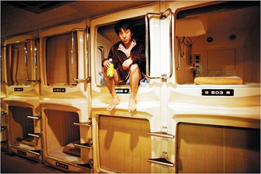 受金融危機傷害,日本大城市不少失業(yè)或面臨失業(yè)的“蟻族”不得不入住只能橫著爬進去的“蝸居”——“膠囊旅社”。