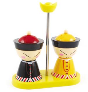 又該做飯了,每天面對鍋碗瓢盆的“交響曲”,最好能給廚房添點亮色來增加生活的情趣。這是一款古代古代主題加現(xiàn)代風(fēng)格的調(diào)味瓶,兩個小人都是調(diào)味瓶,帽子是蓋子,可旋轉(zhuǎn)打開,可分別放入不同的調(diào)味品。放入家中,絕對是一款精美的實用品、裝飾品。