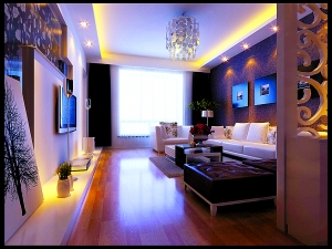 本設計方案采用現代簡約的表現手法,客廳中,電視幕墻以玻璃切割和墻體巧妙的結合為一體,簡潔而又不失高雅。設計師利用素色的墻紙,再配以大幅的花色加以點綴,又采用溫潤的原木色地板提升視覺上的升溫,然后,巧妙地點綴了綠色植物和花卉,使整個家居格調增添無限生機。