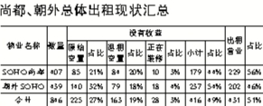 12月6日,SOHO尚都和朝外SOHO的近百名業主在SOHO尚都3層咖啡廳內召開了業主大會,記者了解后得知,這近百名業主各自擁有SOHO尚都和朝外SOHO的一間到幾間商鋪不等,基本在2006-2007年間收房。據業主商小姐介紹,業主們收房三個月之后開始出現問題,因為生意慘淡,租戶開始鬧事,之后新的招商招不上來,出租情況一直很差,目前朝外SOHO基本一半商鋪空置,出租情況最好的SOHO尚都西塔也有35%左右的商鋪空置。