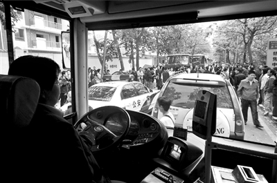 記者發現,現場有9輛31路公交車被堵無法前行,公交司機們三三兩兩地聚在路邊聊天。一名王姓司機說,他已被堵近1小時,但因車隊未允許調頭返隊,他只好原地等待。當被問及如何處理車上乘客時,他說,由于等待時間過長,乘客只能下車步行離開此地。