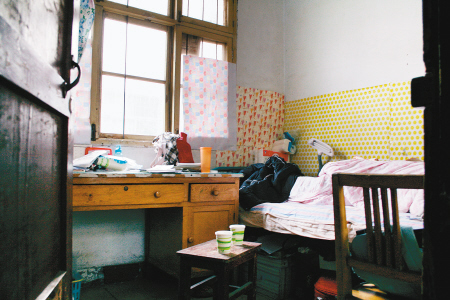 爬上一家民房狹窄而昏暗的樓梯,就是馬潔居住的地方。這間不足10平方米的屋子里,靠北的窗戶下放著一張上世紀(jì)80年代曾很流行的“一頭沉”,桌面上擺著一本《心理咨詢》。馬潔說(shuō),這兩天她正在準(zhǔn)備一個(gè)考試。這張桌子兼做書(shū)桌、飯桌和辦公桌。東面的單人床占據(jù)了整間房子的三分之一,桌子的另一邊,放著一張小茶幾,堆滿了洗滌用具和餐具,兩者之間并無(wú)清楚界限。床頭的墻上貼著一張寫(xiě)得整整齊齊的菜單,這讓記者有些驚訝。“鍋在床底下”,她自嘲地說(shuō),“電飯鍋、電磁爐,是我花了近500塊錢購(gòu)置的。”