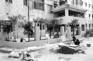 “說是說一樓地面的綠化地是公共的,其實當年買樓時,開發商承諾過,買一樓的房子送地面花園,買頂樓就送天臺,但后來不知道怎么就變成公共的了!我本來也想學阿富在自家房門前后建立私家花園,由于其他業主的抗議和管理處的干預,只有作罷了。”——南一街八幢一樓業主馮先生