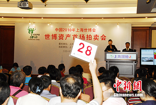 “8萬,15萬,36萬!”今天下午兩點,上海福州路108號拍賣大廳擺放著巨型海寶,屏幕上不斷滾動播放著世博會開幕式影像資料。由上海世博會事務協調局委托的世博會資產首批拍賣會在此間拉開序幕,敲響了上海世博會資產拍賣“第一槌”。