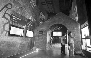 安哥拉館注重用多種元素表達土著文化,比如館內墻上有反映土著人生活場景的巖畫。在安哥拉,巖畫是當地人喜聞樂見的藝術門類,遍布安哥拉從北到南40多個地區,內容以動物、人物及各種場景圖案為主。