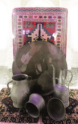 走進展館,仿佛置身于首都巴庫的老城區——內城。阿塞拜疆是人類最古老的定居地之一,巴庫古城至今完整保留著修建于12世紀的汗王宮殿建筑,被稱為“內城”,擁有迷宮般的狹窄巷道,景致如畫。