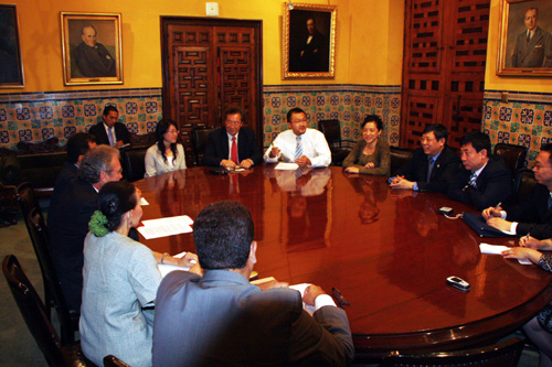 代表團(tuán)隨后與秘魯外交部副部長岡薩羅·古鐵雷斯(Gonzalo Gutierrez Reinel)、外交部教育文化交流局局長等秘魯參展上海世博會事務(wù)的相關(guān)負(fù)責(zé)人舉行會談,研究秘方和組織者簽約及后續(xù)合作等涉及秘魯參展籌備的具體事宜。古表示,上海世博會對于增進(jìn)中秘兩國友好關(guān)系和人民之間的了解具有非常的積極意義,感謝上海世博會組織者對于秘魯參展工作所給予的支持。