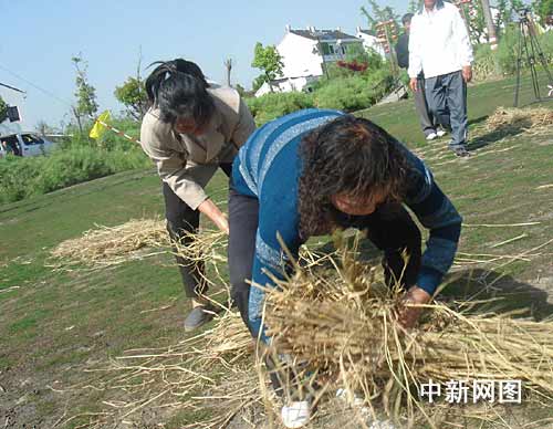 連日來,上海市及各區縣紛紛舉行各種形式的慶祝活動,迎接二0一0年上海世博會開幕倒計時一周年。在今天下午的廊下鎮記者看到,一個多由農民參加,頗有江南鄉村特色的體育節拉開了帷幕。據主辦方介紹,這個名為“健康迎世博”的廊下鎮第二屆鄉村體育節,旨在表達當地農民希望通過體育運動來迎接世博會開幕的心情,同時也為“五一”假期里來此郊游的滬上市民提供一個參與鄉村游戲的舞臺。將持續至5月3日的本屆鄉村體育節,設立的十個體育游戲項目,多是從日常的農活中提煉而來的,包括捆稻草、插秧、搓跳繩、搶在暴風雨前、拋接米袋和運磚造房子等,充滿了鄉村野趣。