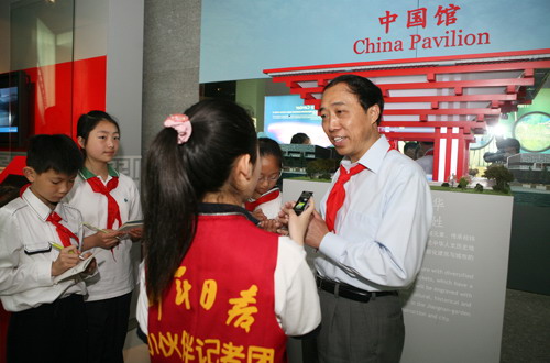 5月19日,上海世博局黨委副書記、紀委書記許偉國接受了上海市第六次少代會代表及《少年日報》小記者的采訪。小記者們就上海世博會學生優惠門票、小朋友如何參與上海世博會等問題進行了提問。