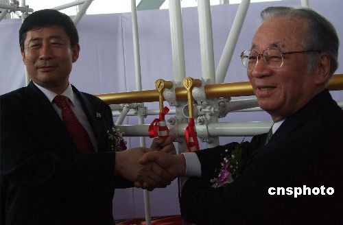 7月4日,上海世博會日本產(chǎn)業(yè)館在“中國第一廠”江南造船廠的舊址內(nèi)“豪華”奠基。該產(chǎn)業(yè)館是日本民間企業(yè)第一次如此大規(guī)模地聯(lián)手參展本國以外的世博會。上海世博會事務(wù)協(xié)調(diào)局局長洪浩與日本產(chǎn)業(yè)館參展合同公司代表堺屋太一共同啟用將用于展館建設(shè)的金色螺母,攜手見證奠基。中新社發(fā) 鄭瑩瑩 攝