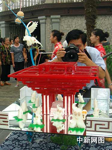比賽現場,方糕、麻球、眉毛餃、菜塔餅……一道道色、香、味俱全的江南特色小吃在農村新天地里擺開了擂臺。不少來此旅游觀光的游客,在品嘗了這些原汁原味的江南傳統小吃之后,還不禁躍躍欲試、一試身手,與金山的巾幗美食高手們一起互動競秀。此外,由美食巧匠們制作的一組演繹上海世博會主題的創意小吃作品,表達了金山姐妹喜迎世博的美好心情。