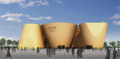 7月29日,猶如七座金燦燦的麥垛,落落大方地展示生命的健康與豐盛;天光與水色交相輝映,詮釋著自然平衡的和諧之美……這是上海世博會萬科企業(yè)館建成后將呈現(xiàn)給世人的景象。29日,名為“2049”的上海世博會萬科企業(yè)館發(fā)布展館建筑設計方案,同時在世博會浦西園區(qū)舉行奠基儀式。上海市政府副秘書長、上海世博會事務協(xié)調(diào)局局長洪浩,萬科董事會主席王石等出席儀式。