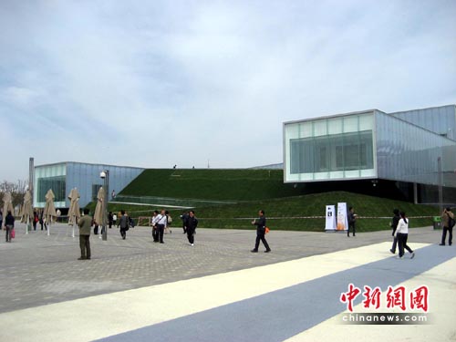 愛爾蘭館整個被包裹在一個由玻璃和聚碳酸酯組成的多層半透明狀的外立面中,作為絕緣材料的聚碳酸酯起到了為展館內部過濾光線的作用。而通過外部表面覆蓋層則可以隱約看到參觀者在館內的活動。這些帶有坡度的半透明的布展格局,全部懸掛在作為展館基座的若干塊綠色土丘上。這些如同燈籠般半透明的設計反映了愛爾蘭發展經驗的雙重性,象征著城市與農村、人文與自然的和諧關系。