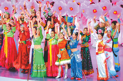 演出劃分為3段,第一段8分鐘,是燈光和激光藝術(shù)創(chuàng)造的展示,1200只彩色探照燈、17臺高功率激光器、LED特大屏幕284米長、35米高,改變了人們的藝術(shù)視野;第二段是10分鐘的裝飾表演,LED燈、旗船、固定噴泉和流動噴泉,突顯高科技,同時極大美化了自然;第三段12分鐘,是焰火的奇觀,這不是數(shù)量的顯擺,而是藝術(shù)質(zhì)量的極致,講求的是新穎,水面焰火、陸地焰火、空中焰火、造型焰火交相輝映,就連鞭炮都是近些年設(shè)計的最新品種。