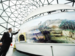 進館后,必經一段弧形走廊,約30米長,通向環形劇院。那是第二個體驗區“光之廳”,被透明玻璃覆蓋,任憑陽光肆意傾灑。