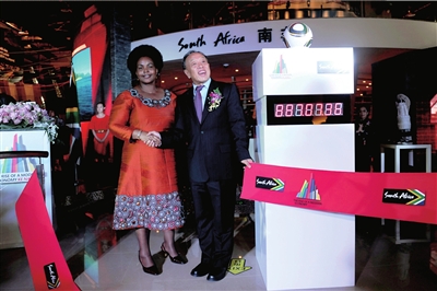 南非世界杯將于6月11日開幕,這是世界最高級別的足球盛會首次踏足非洲大陸。世博會南非館開館儀式上,李肇星與南非國際關(guān)系與合作部長馬沙巴內(nèi)共同摁下了南非世界杯的倒計時牌。“世界杯期間,世博會南非館將不間斷播放世界杯比賽,歡迎大家來看!”馬沙巴內(nèi)向參觀者發(fā)出了邀請。