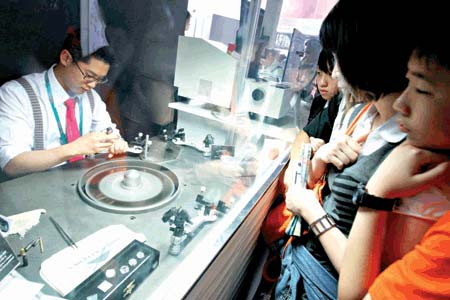 據(jù)劉子斌介紹,此次他們?cè)谑啦⿻?huì)上首次開(kāi)辟了裸鉆售賣(mài)的服務(wù),價(jià)位從1萬(wàn)元到45萬(wàn)元不等,沒(méi)想到在短短的兩個(gè)多星期內(nèi),就售出50多顆,其中最大方的一位買(mǎi)家更是買(mǎi)下了一顆價(jià)值20萬(wàn)元的裸鉆。(范彥萍)