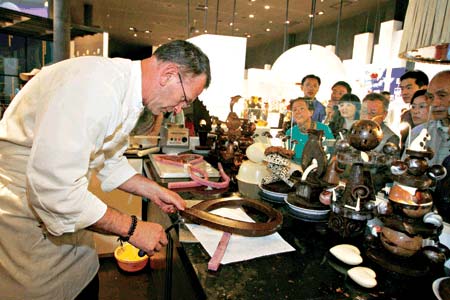 很少有游客會知道,從他的手下誕生的巧克力是有“巧克力中的勞斯萊斯”美譽(yù)的藝術(shù)品,而他的粉絲中更有美國前總統(tǒng)克林頓、女星伊麗莎白·泰勒等大牌人物。在結(jié)束他15天的上海世博會之行前,特里·莫瑞接受了本報(bào)記者的專訪。他興奮地告訴記者,回到比利時,他就將研發(fā)一款“中國味”巧克力。