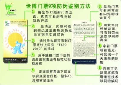 世博會園區現場白蓮涇、高科西路、長清北路、上南路、后灘、魯班路、西藏南路、半淞園路、馬當路、東昌路水門等10個出入口,銷售當日普通票、當日優惠票、當日夜票等三種門票。